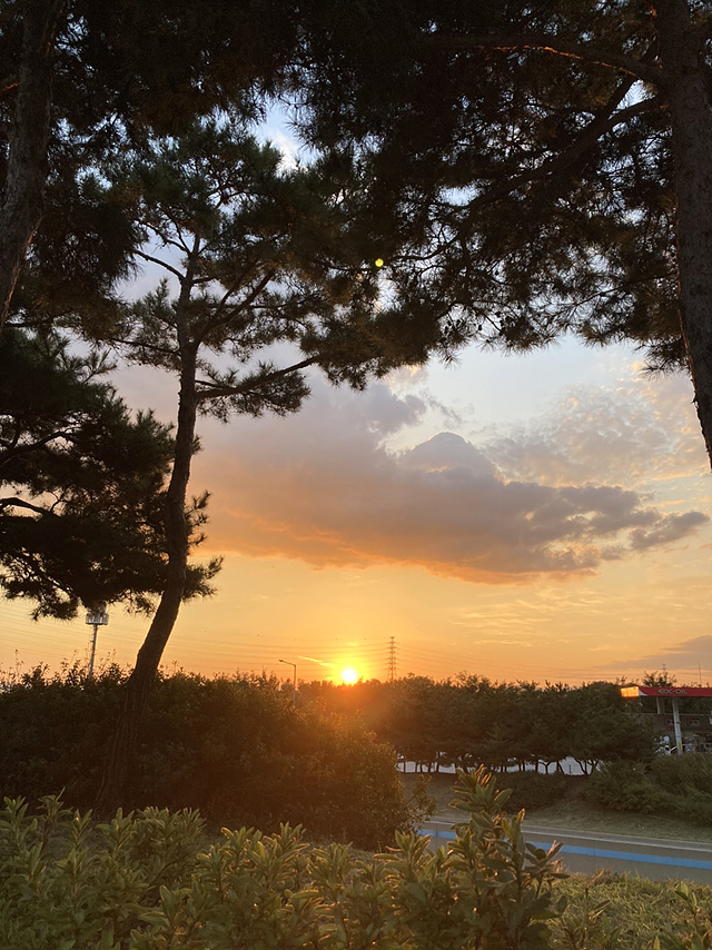 노을이 예뻐 사진으로 담으려다 놓쳤다.