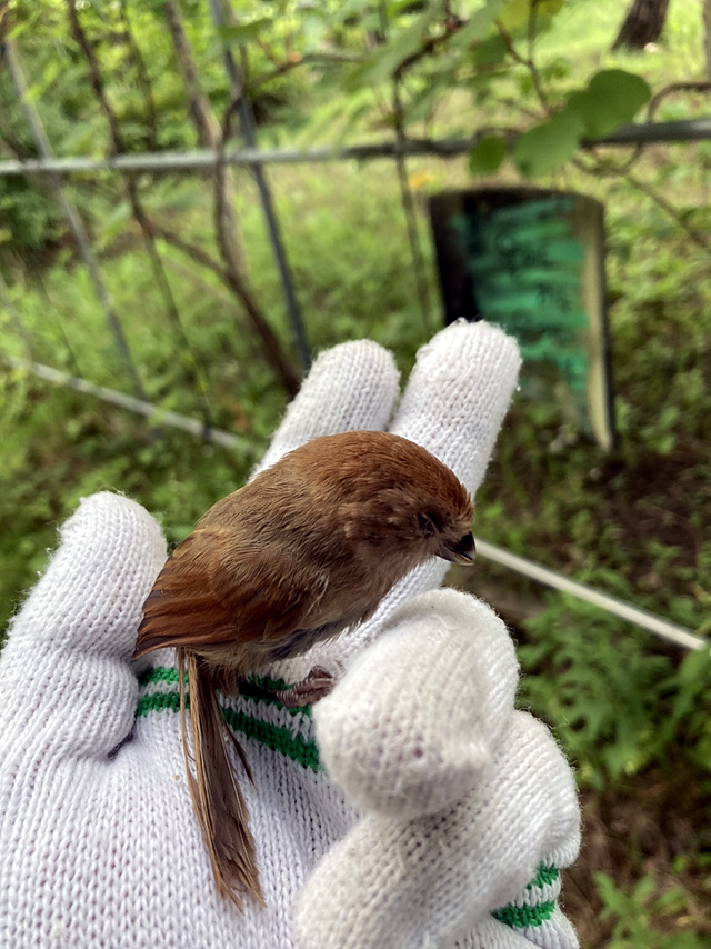 작은 새다. 참새 새끼인 것 같아, 술집 사장님께 면장갑을 빌려 조심스럽게 손으로 집었다.